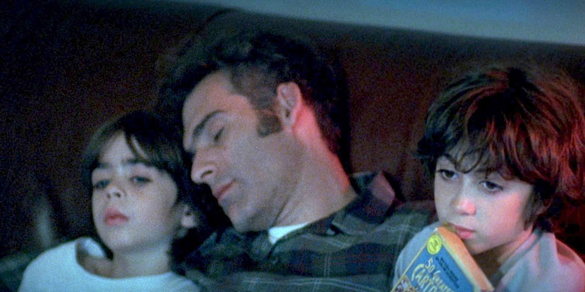 Sonny (Adam Sandler) and Julian (Cole and Dylan Sprouse) work the tollbooth. Sonny (Adam Sandler) puts some newspaper down to stop the bedwetting problem.