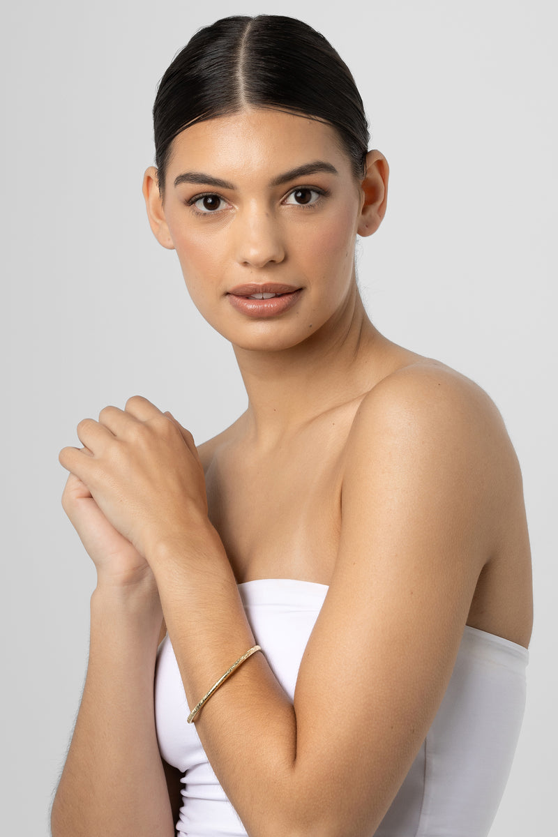 The Sonny Gold is comprised of three linked rings of 18k rose gold, one of which is detailed with white full cut pavé-set diamonds. The rings are joined by two Celebrate Bracelet …
