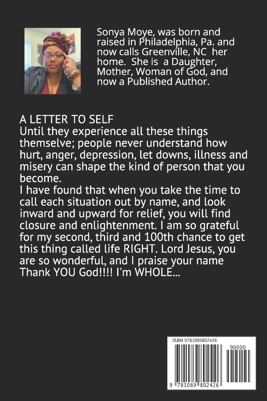 I would encourage any broken women to read Sonya Moye This Place book. This author expresses each emotion from Love to anger, crying to winning. She has the ...