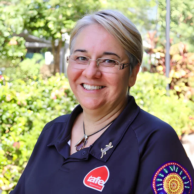 Stacy walks side by side with her students - TAFE Queensland