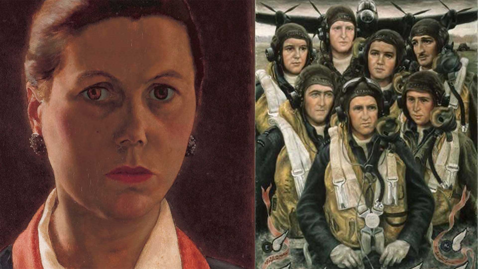 A Stella Bowen self portrait and her Bomber crew, one of the portraits of Royal Australian Air Force bomber crews she did in England as World War II artist ...