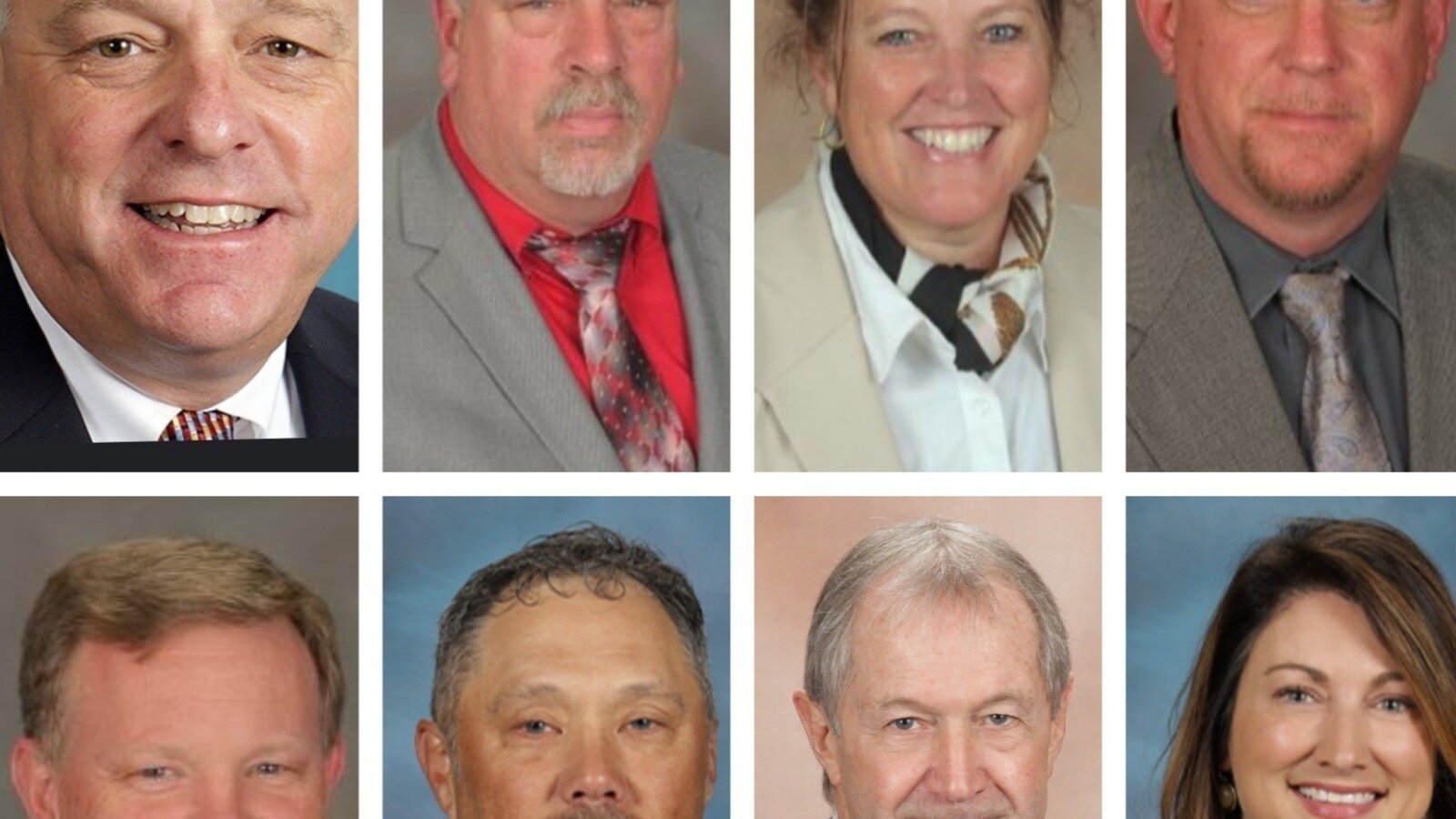Stephen Gainey, Board of Education members Gary Cook, Tracy Boyles, Fred Burgess, Mike Sink, Phillip Lanier, and Shannon Whitaker and ...