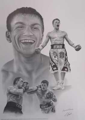 Black framed drawing of Middle and super middleweight weight world Chris Eubank in his prime, by the artist Stephen Khamis. ( original stamp on picture). Ideal Christmas present for the …