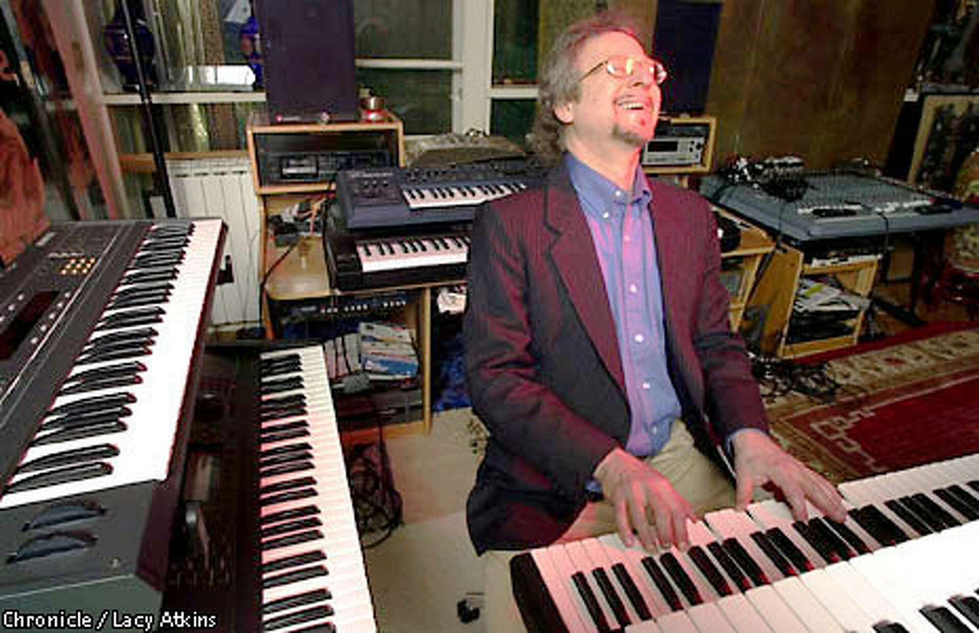 Steve Halpern works on his recordings in his studio on one of ...