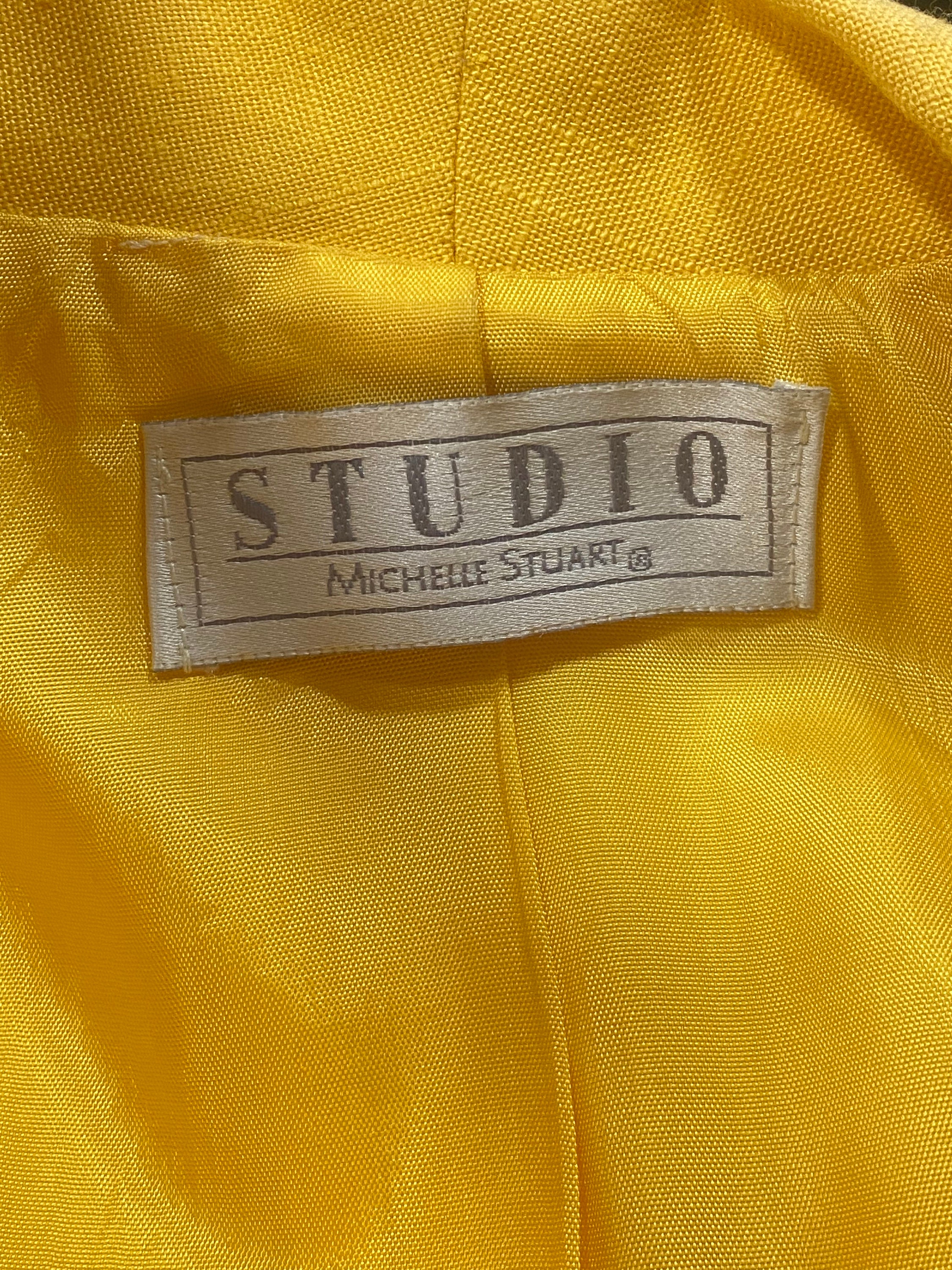 1980's Vintage Michelle Stuart Lemon Yellow Linen Blazer. Welltraveledcurator.