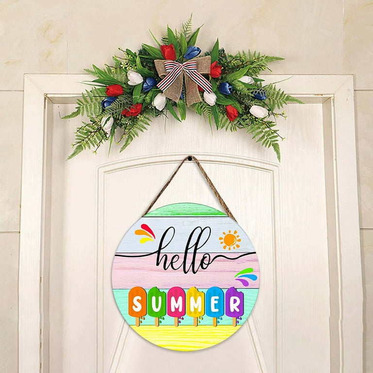 Results · Hello Sunshine Door Sign Summer Decor Wreaths for Front Door Wreath Wooden Sign hanger for Pool Farmhouse Porch Home Summer Wall Decorations (Blue).