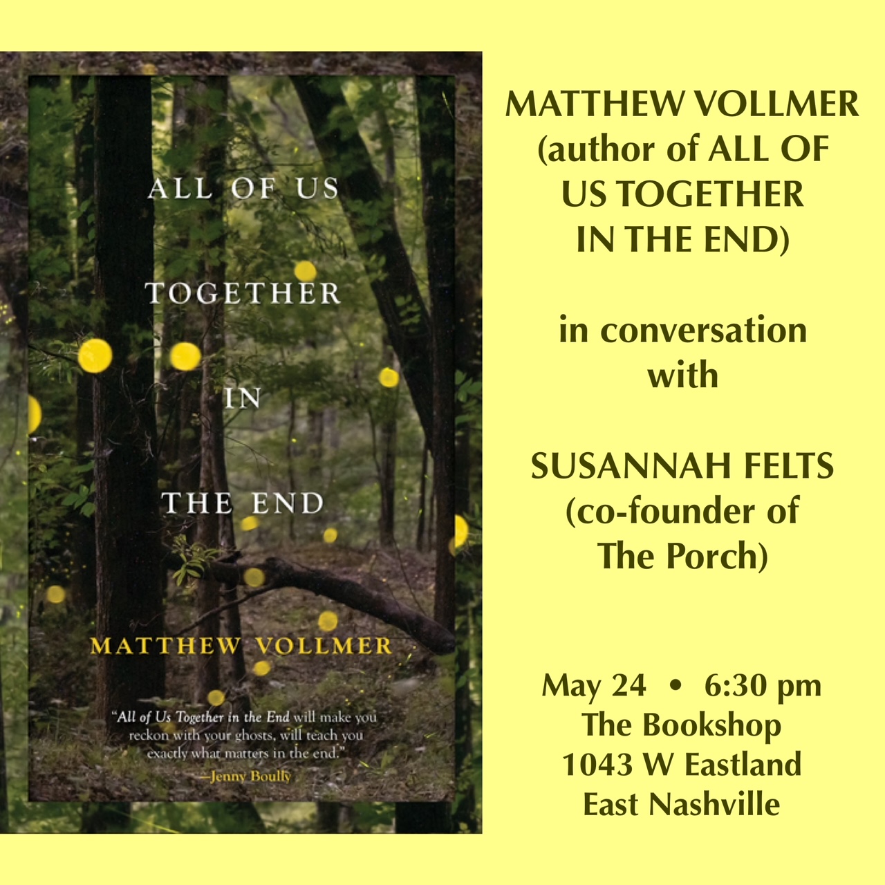 Susannah Felts is a writer, editor, and educator in Nashville, as well as co-founder of The Porch Writers' Collective, a nonprofit literary center.