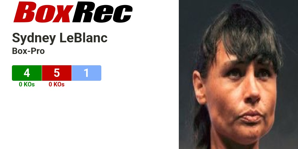 Sydney LeBlanc. Pro Boxing Record. 4-5-1. News • Discussion · Update ... View Disclaimer. Sydney LeBlanc News News. View All. Articles mentioning Sydney LeBlanc.