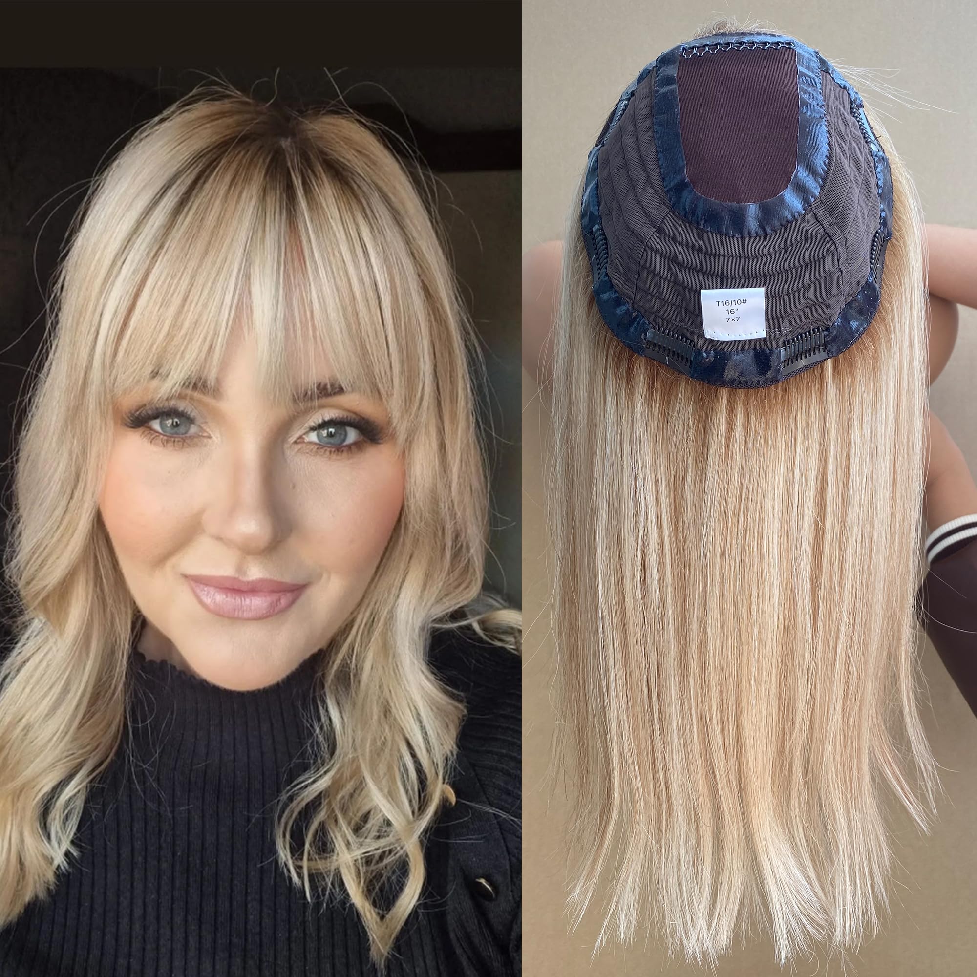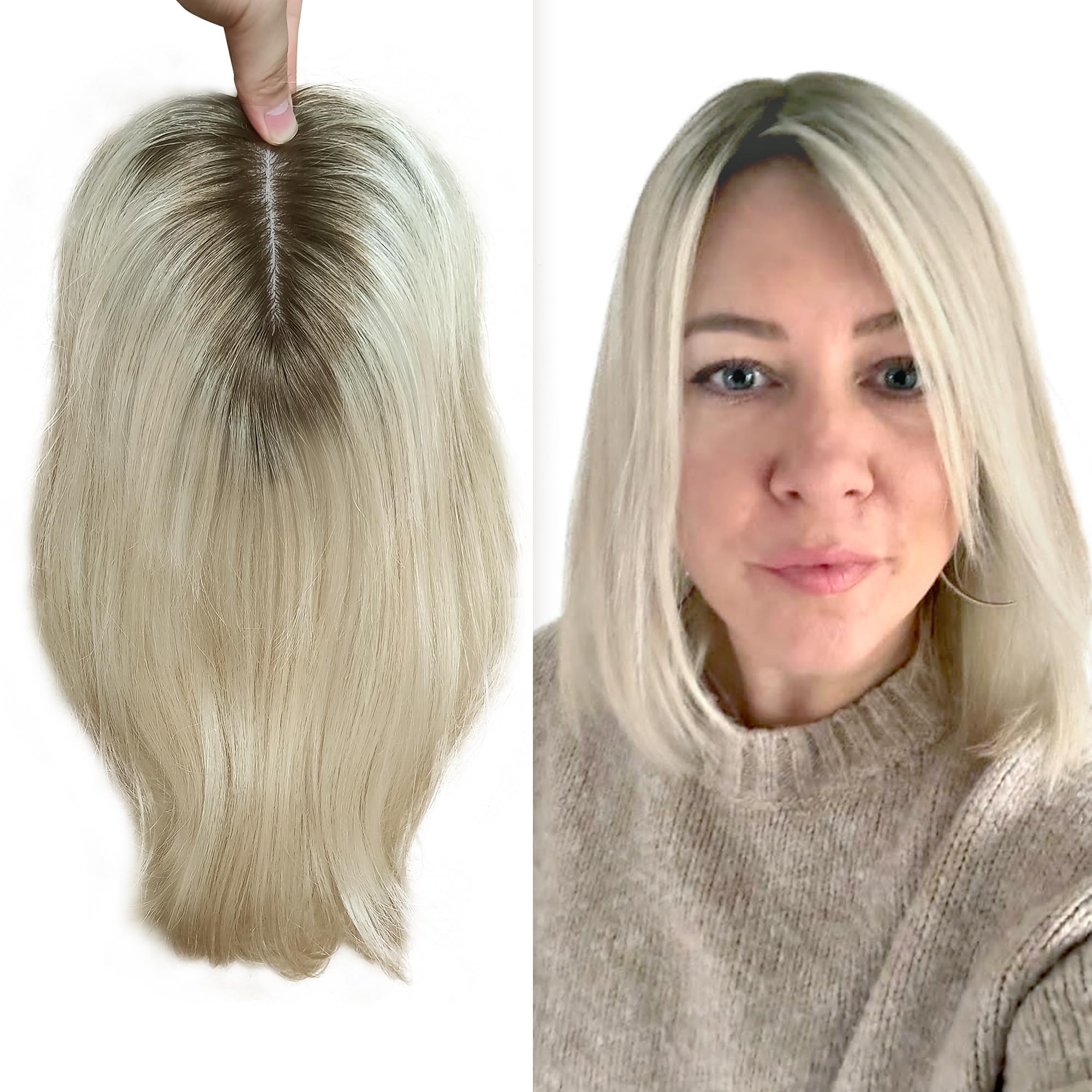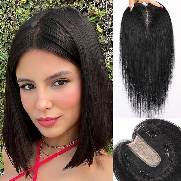 FQNing Womens Hair Topper Remy Human Hair No Bangs Soft Silk ...