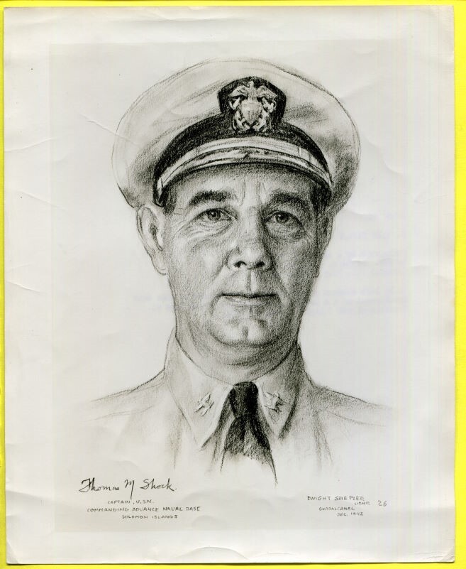 Thomas Shock graduated from the U.S. Naval Academy at Annapolis, Class of 1913. He retired as a U.S. Navy Rear Admiral. Awards Received. Legion of Merit.