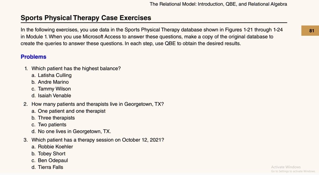 Solved Which patient has a therapy session on October | Chegg.com