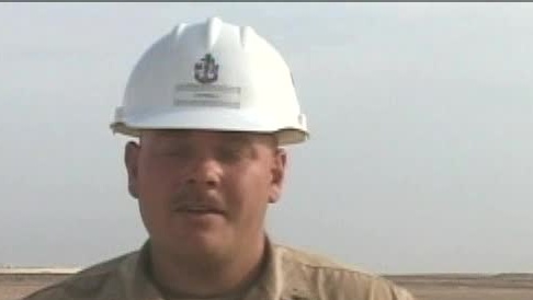 U.S. Navy Petty Officer 1st Class Tim Darnell wades through lily pads in the manmade artificial wetland at the Veterans Memorial and Nature ...