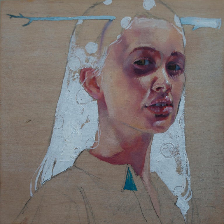 For Sale on 1stDibs - "TO THE INFIRMARY", surrealist painting, saints, insects, path, dream, religious, Oil Paint, Linen by Tony Geiger. Offered by Gagné Contemporary.
