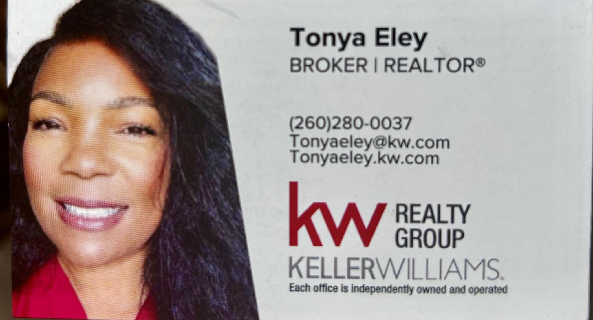 Tonya Eley. Keller Williams Realty Group. 930 Calhoun St , Fort Wayne , IN , 46802 ¡ 260-280-0037 ¡ Send Email. Contacts. Primary. Keller Williams Realty Group.