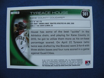 Find many great new & used options and get the best deals for 2010 Topps Tyreace House signed Baseball Card at the best online prices at eBay!