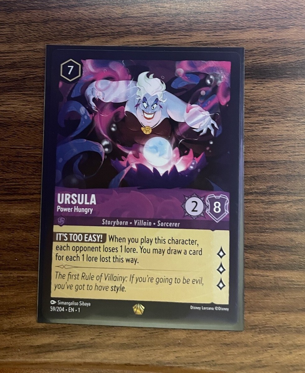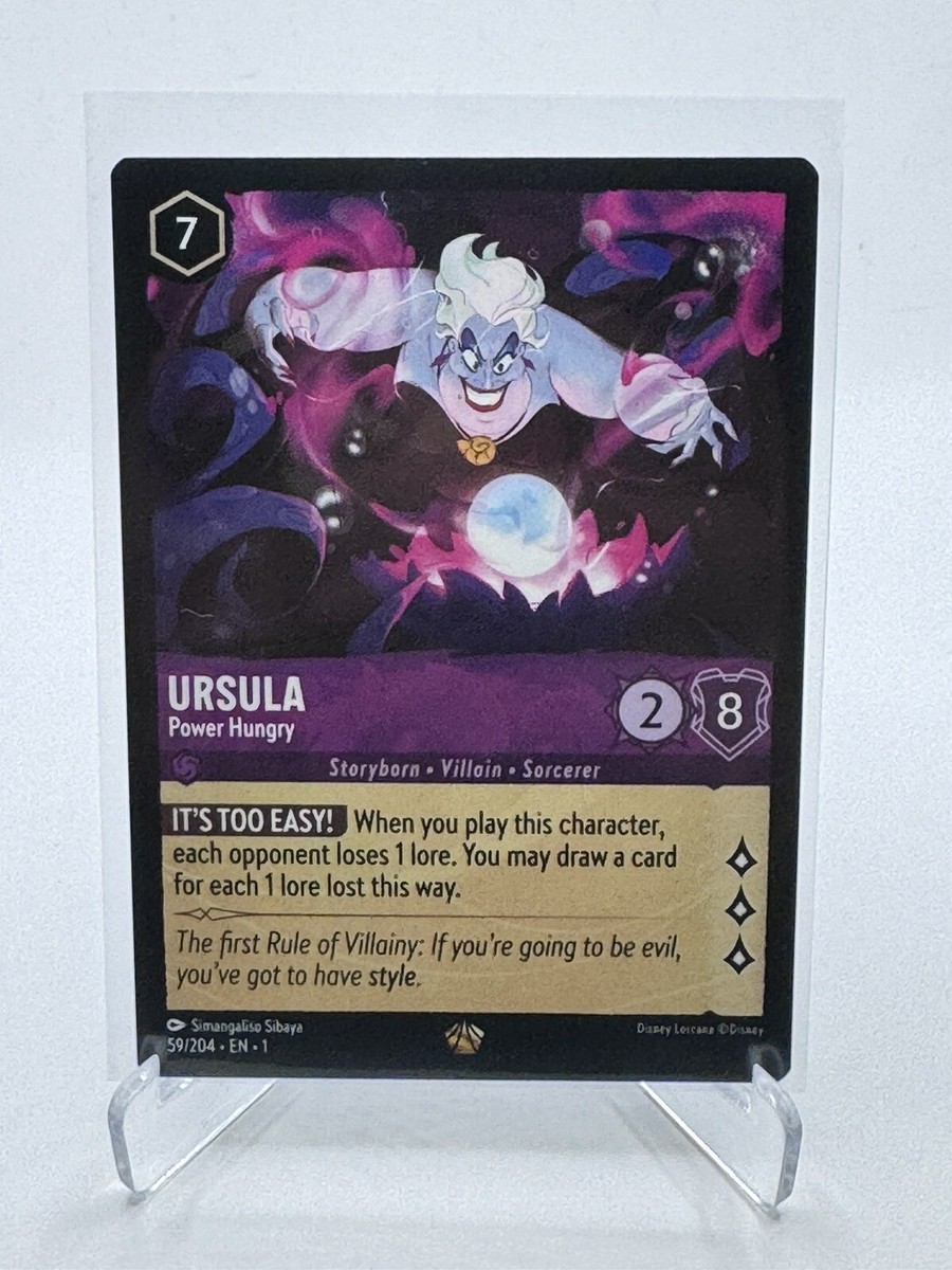 Disney Lorcana TCG Ursula Power Hungry 59/204 Legendary The First Chapter NM ; Condition. Ungraded - Near mint or better ; Quantity. 2 available ; Item number.