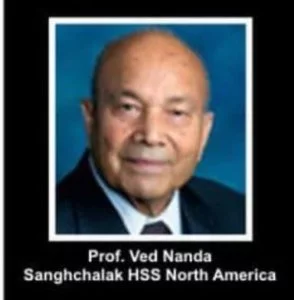 Ved Nanda ... HSS mourns the passing of its America Sanghachalak (President) Prof. Ved Prakash Nanda on Monday, January 1st, 2024 in his hometown ...