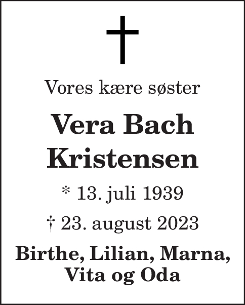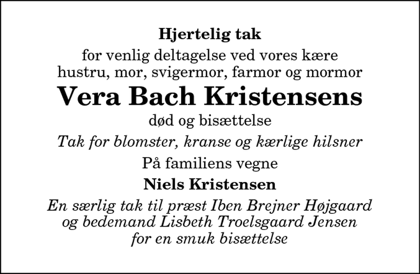Vera Bach · Vera Bach · Vera Maria Bach Sørensen · Vera Søndergaard Bach · Vera Bak Hansen · Sidefod.