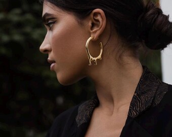 Michael Vincent Michaud 18K Gold Plated Raindrop Earrings ... Cast in bronze with an 18k gold finish. Accented with cast cobalt glass. 1.75 inches by 0.5 inches.