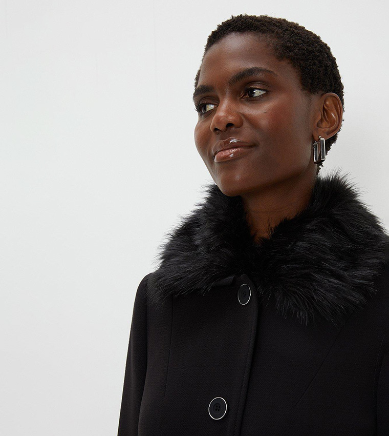 wallis black faux fur collar coat - TMRC Financing Broker LLC