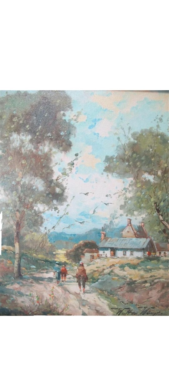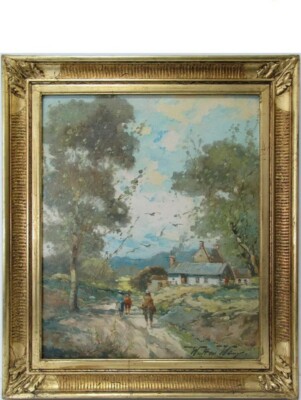 Walter Wurst Landscape O/B Original Gold Gilt Lemon Scoop Frame.