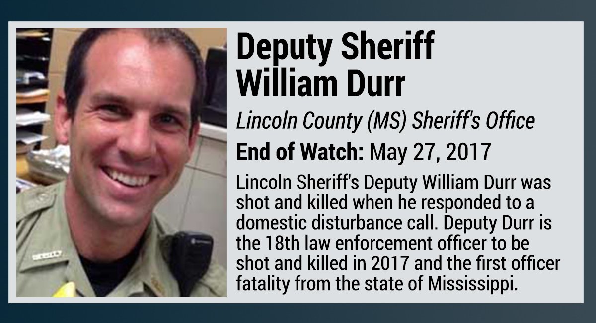 The lone exception was Lincoln County Deputy Sheriff William Durr, who was killed responding to a domestic disturbance call at the first ...