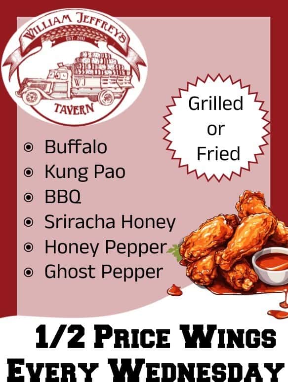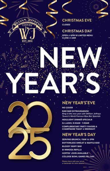 Become a VIP; Sign In. light bulb. William Jeffreys Tavern. warm, welcoming, wonderful. Today's Specials. Tuna Poke Bowl. Berry French Toast. steak and shrimp.