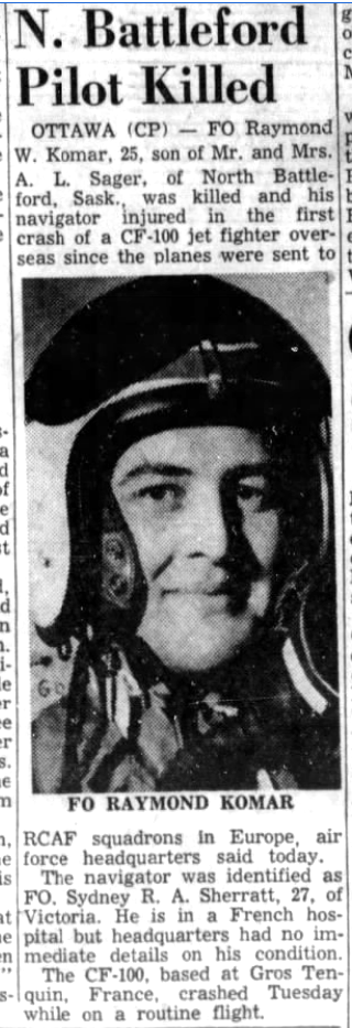 In memory of: Flying Officer Raymond William Komar. May 14, 1957. Grostenquin, France. Military Service ...