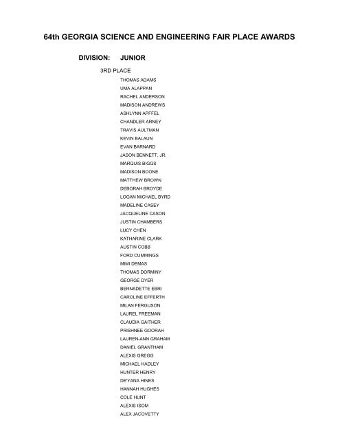 Chandler Ray. Gwinnett School of Mathematics, Science & Technology. Willie Jin. Michael Wang. Gwinnett Online School. Abigrace Diprima. Shona Jackson. Lanier.