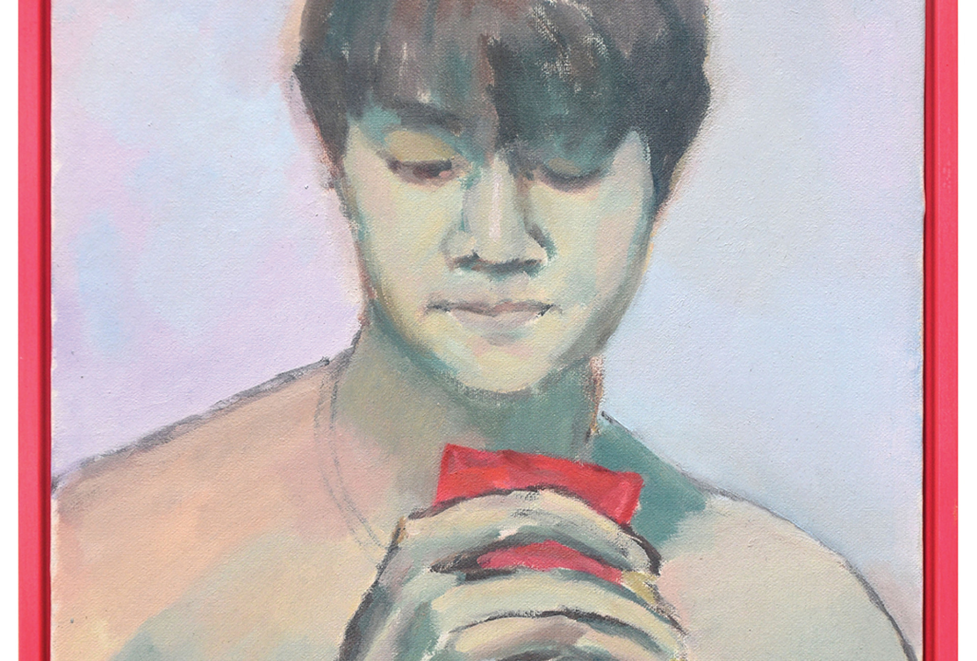 'If You Want To, You Can!' 'I Wonder If Those Are Veneers' Oil On Linen, 27cm x 19cm & 33cm x 24cm. 'My Vape Is Your Vape' coloured pencil on paper, 59cm x 84cm.